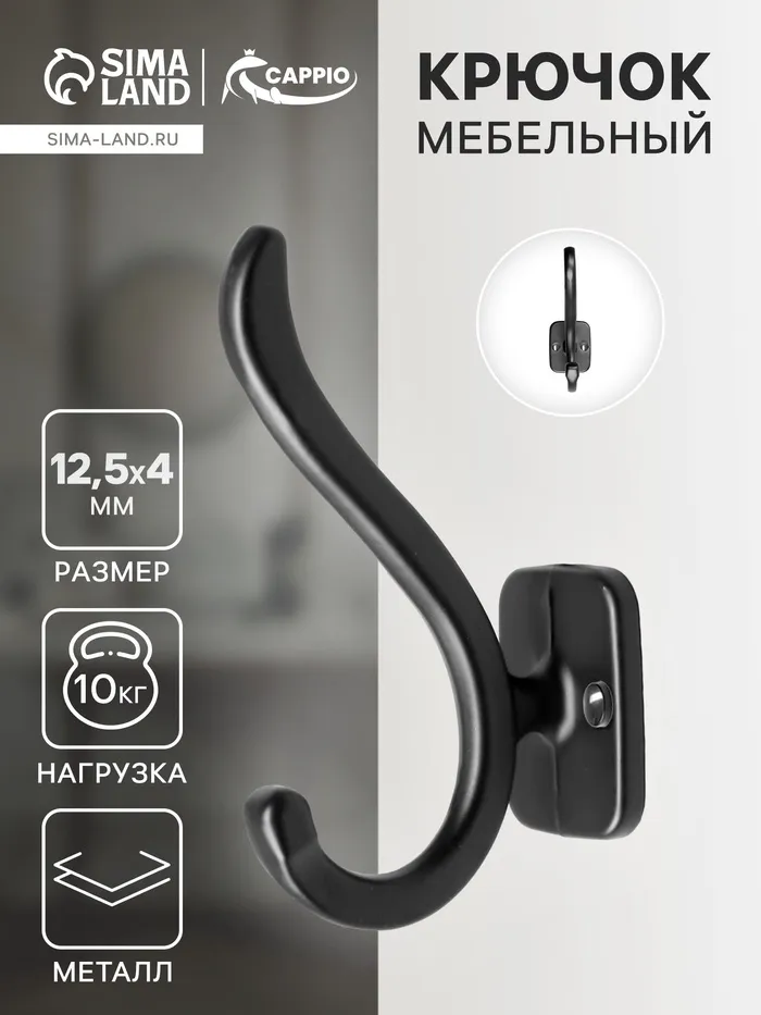Крючок мебельный CAPPIO LOVE, двухрожковый, цвет черный — Характеристики