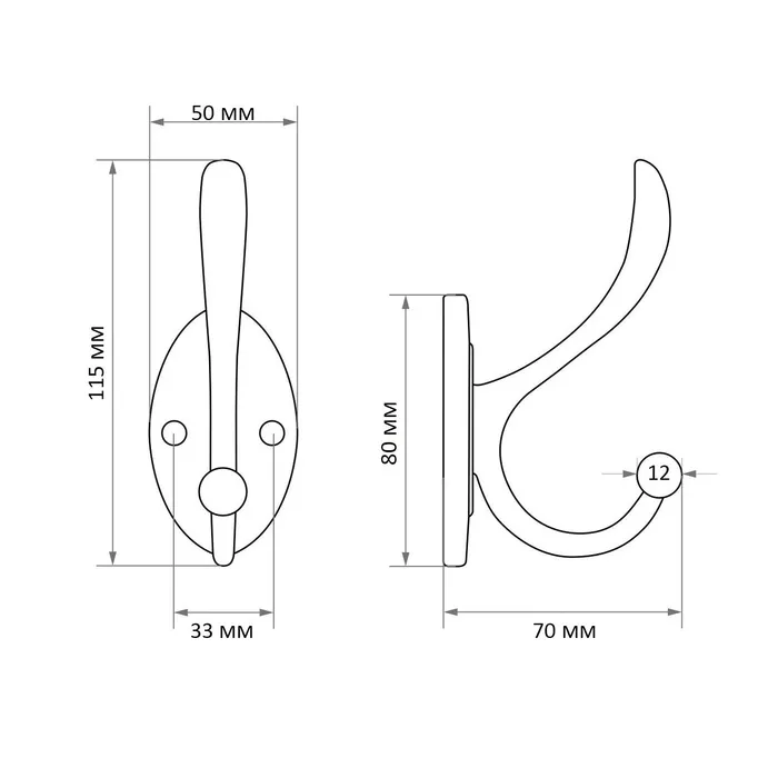Крючок мебельный ТУНДРА TKd=012, двухрожковый, бронза
