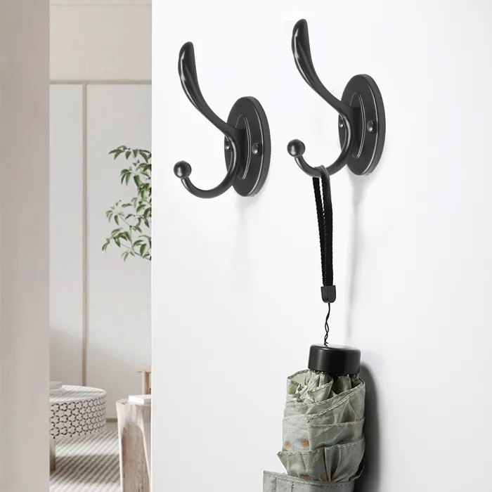 Крючок мебельный ТУНДРА TKd=008, двухрожковый, черный