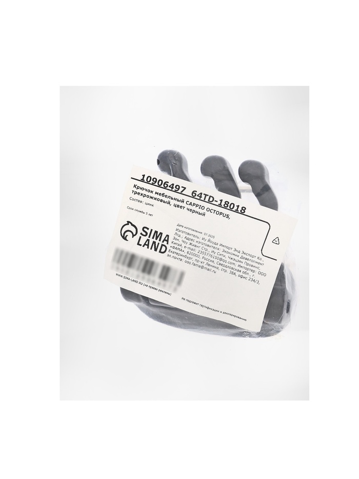 Крючок мебельный CAPPIO OCTOPUS, трехрожковый, черный — Характеристики