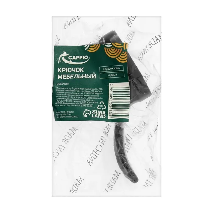 Крючок мебельный CAPPIO PASSION, двухрожковый, цвет черный — Характеристики