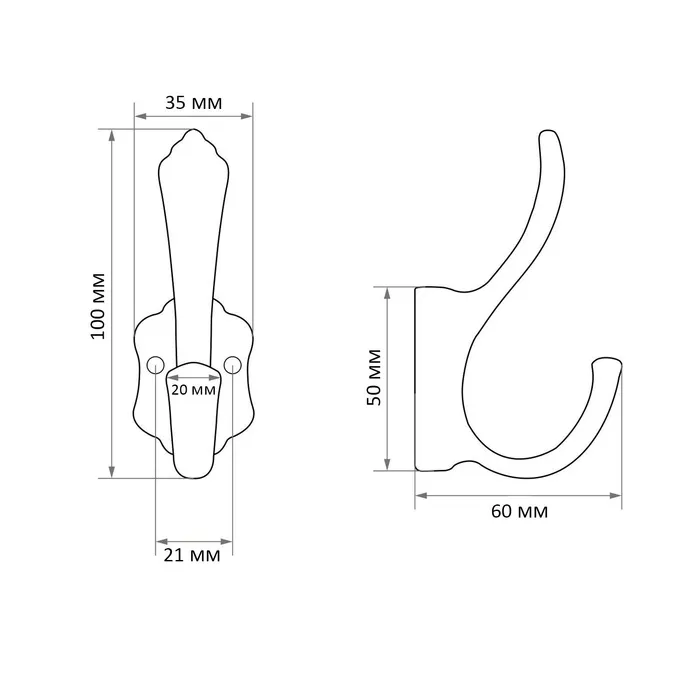 Крючок мебельный ТУНДРА TKd=007, двухрожковый, бронза
