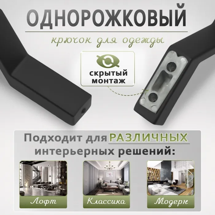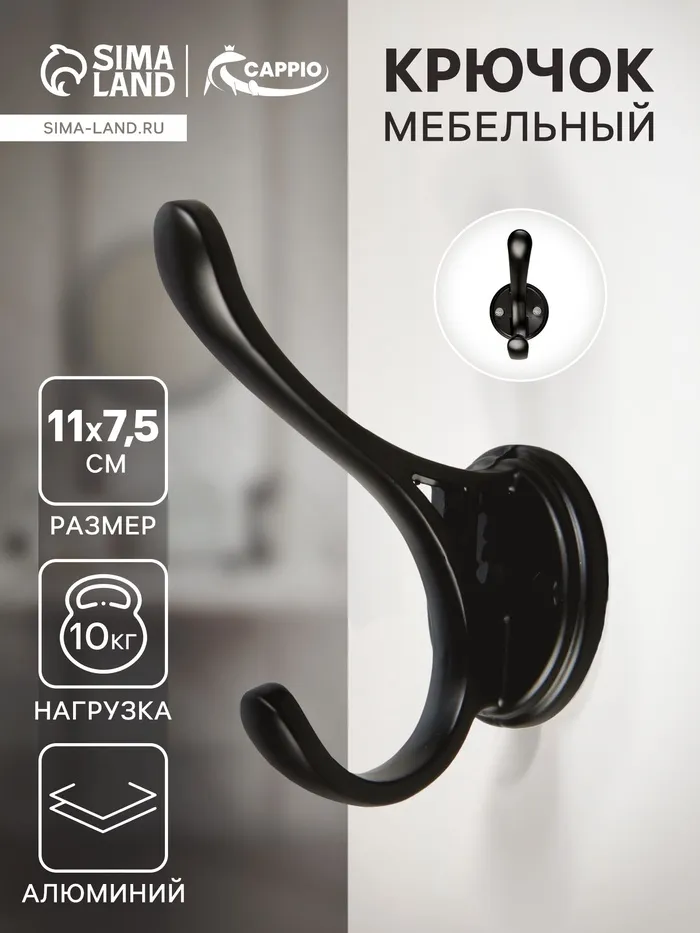 Крючок мебельный CAPPIO TRANQUILITY, однорожковый, цвет черный — Характеристики