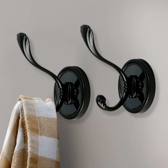 Крючок мебельный ТУНДРА TKd=008, двухрожковый, черный