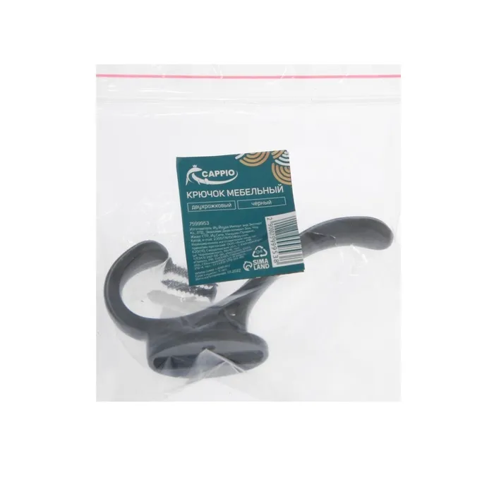 Крючок мебельный CAPPIO WAVE, двухрожковый, цвет черный — Характеристики