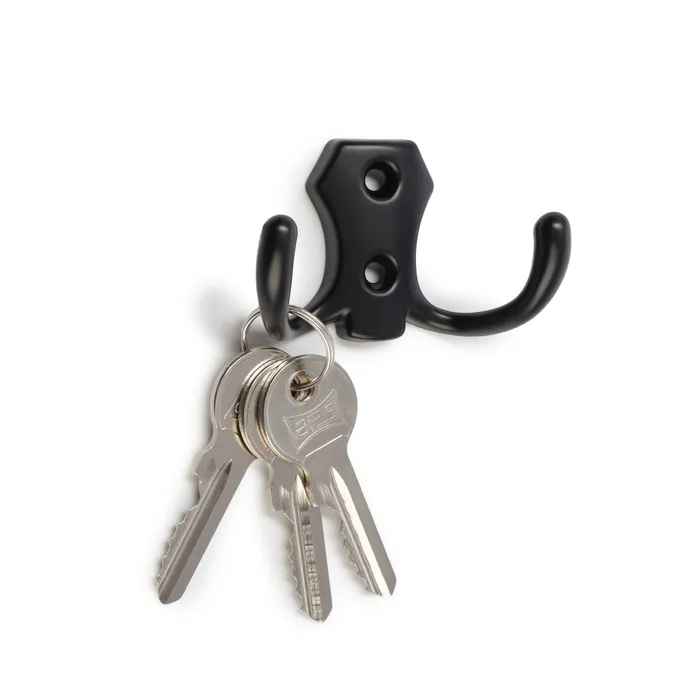 Крючок мебельный ТУНДРА КМ201BL, двухрожковый, черный — Характеристики