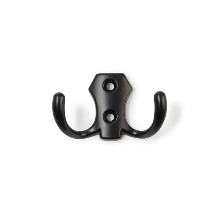 Крючок мебельный ТУНДРА КМ201BL, двухрожковый, черный