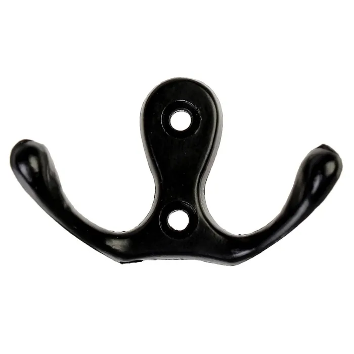 Крючок мебельный ТУНДРА TKd=002, двухрожковый, черный