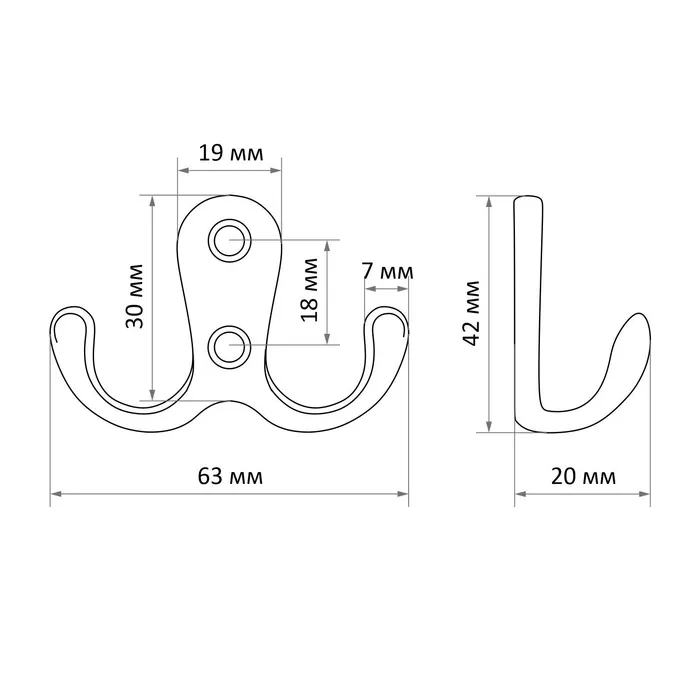 Металлический двухрожковый крючок поможет вам организовать порядок в доме. Данная фурнитура предназначена для хранения одежды, аксессуаров и других вещей.