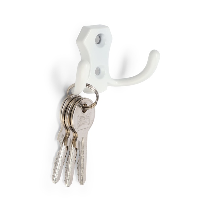 Крючок мебельный ТУНДРА TKD007, двухрожковый, цвет белый — Характеристики