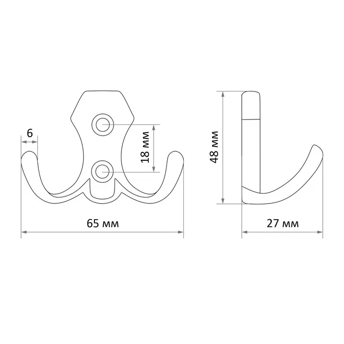 Крючок мебельный ТУНДРА TKd=008, двухрожковый, черный