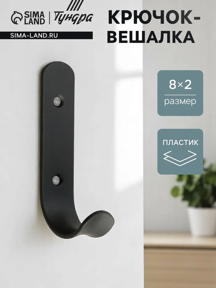 Крючок мебельный ТУНДРА TKd=009, двухрожковый, черный, 5 шт. — Характеристики