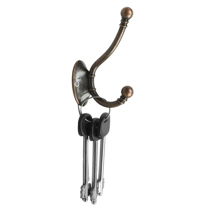 Крючок мебельный ТУНДРА TKd=007, двухрожковый, бронза