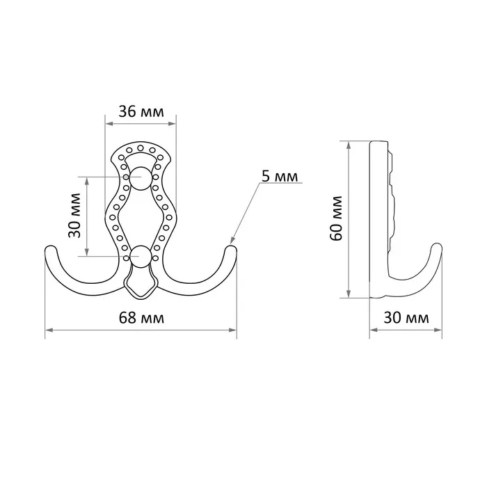 Крючок мебельный ТУНДРА TKd=007, двухрожковый, бронза
