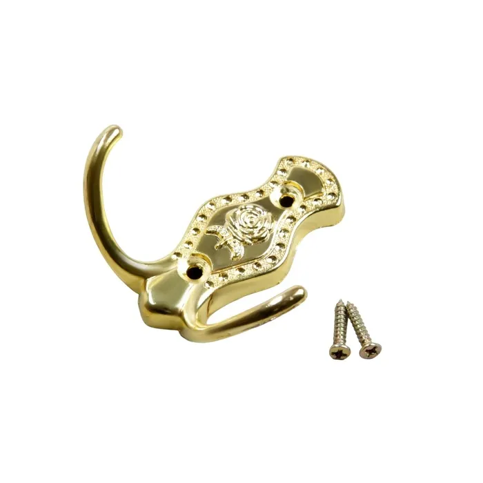 Крючок мебельный ТУНДРА TKD033, двухрожковый, золото/черный