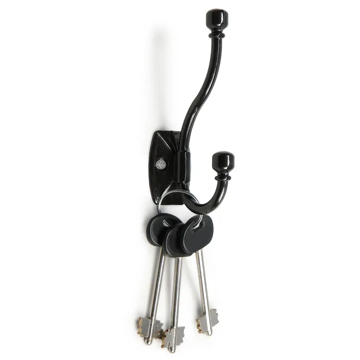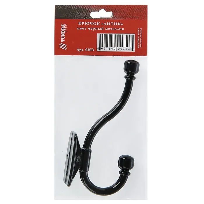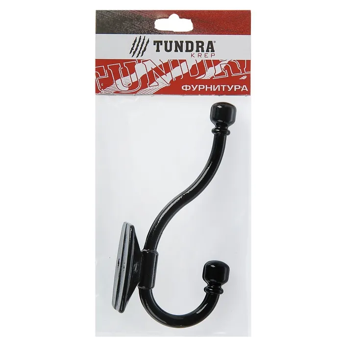 Крючок мебельный ТУНДРА TKd=031, двухрожковый, черный металлик — Характеристики