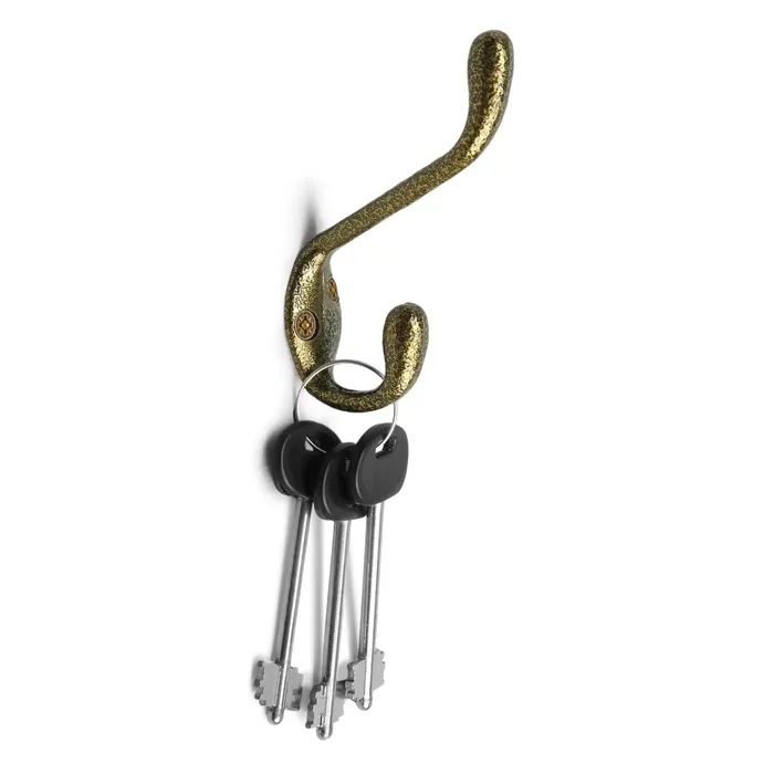 Крючок мебельный ТУНДРА TKD033, двухрожковый, золото/черный
