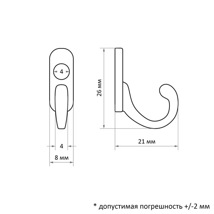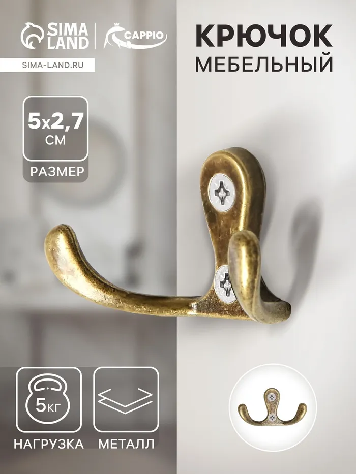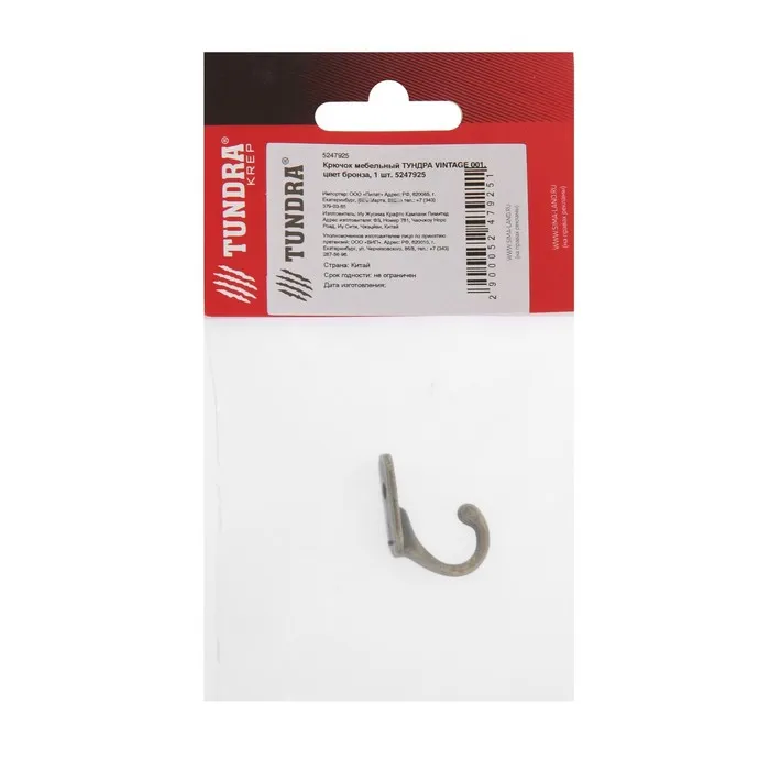 Крючок мебельный ТУНДРА TKO006, однорожковый, бронза — Характеристики