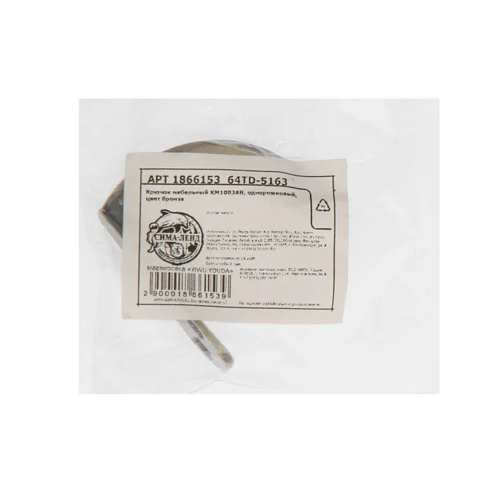 Крючок мебельный ТУНДРА TKO008, однорожковый, бронза, 8 шт. TMP — Характеристики