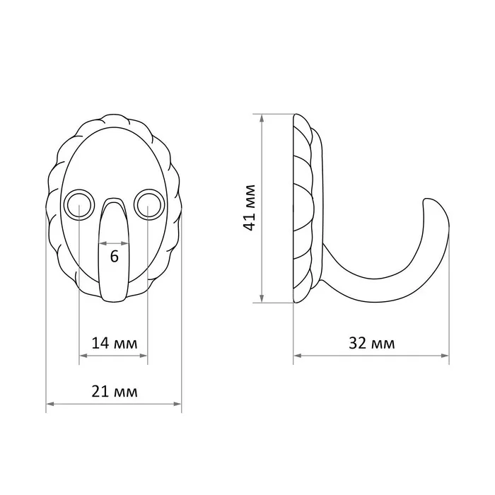 Крючок мебельный ТУНДРА TKd=007, двухрожковый, бронза