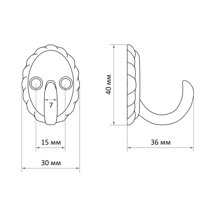 Крючок мебельный ТУНДРА TKO018, однорожковый, бронза, 8 шт. TMP — Характеристики