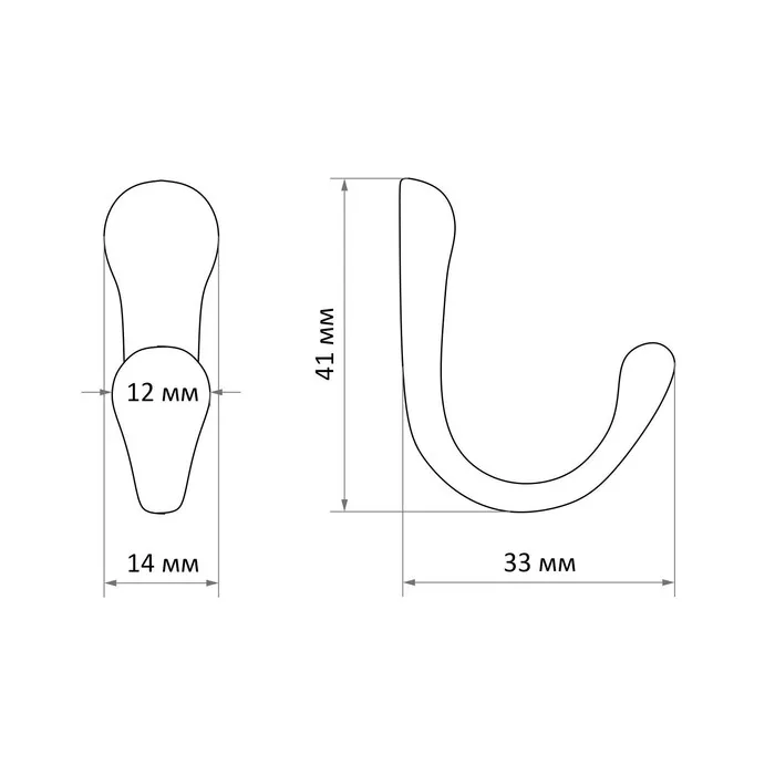 Крючок мебельный ТУНДРА TKd=008, двухрожковый, черный