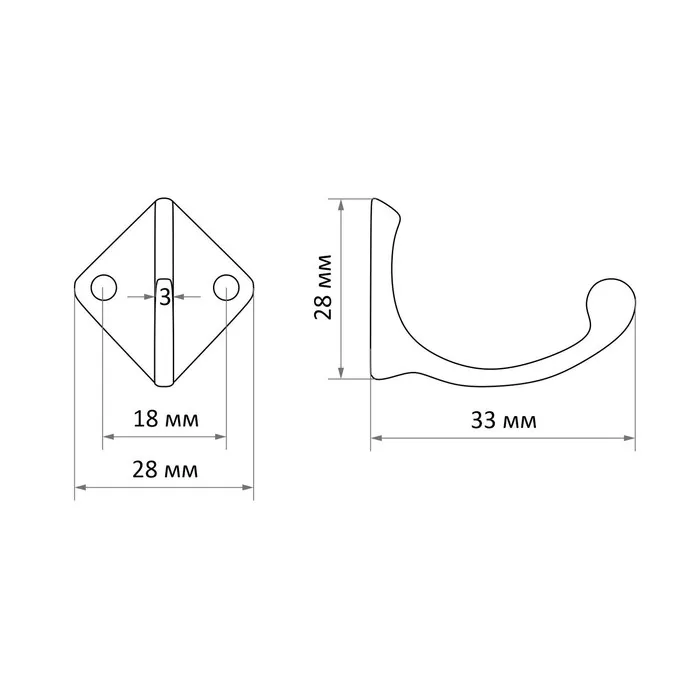 Крючок мебельный ТУНДРА TKO025, однорожковый, бронза, 25 шт. — Характеристики
