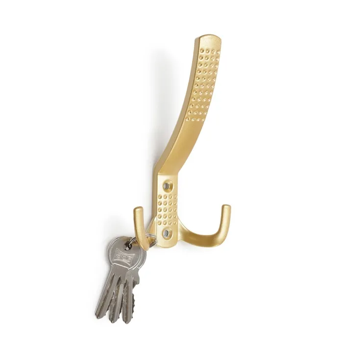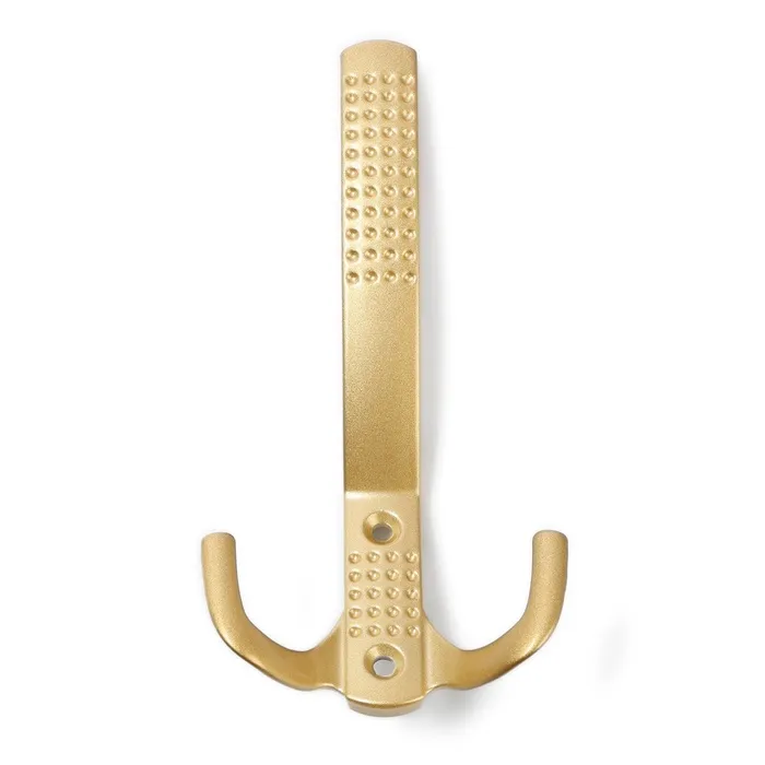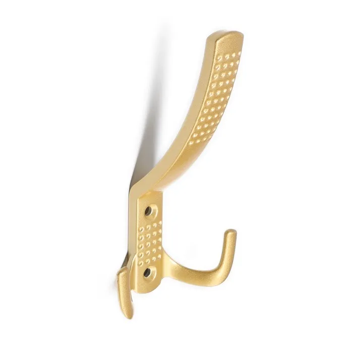 Крючок мебельный ТУНДРА TKD033, двухрожковый, золото/черный