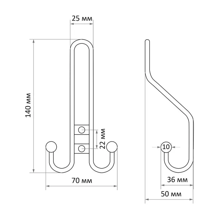 Крючок мебельный ТУНДРА TKd=008, двухрожковый, черный
