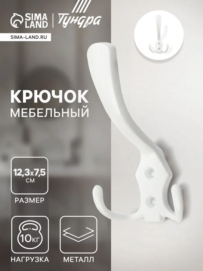 Крючок мебельный ТУНДРА TKT004, трехрожковый, белый — Характеристики
