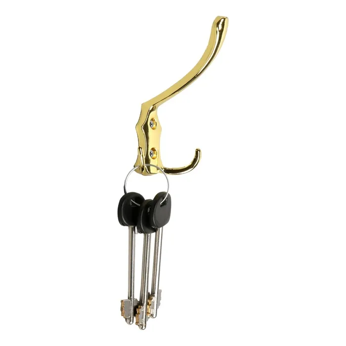 Крючок мебельный ТУНДРА TKD033, двухрожковый, золото/черный