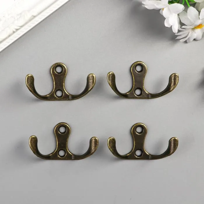 Крючок металл двойной (набор 4 шт) бронза 4,5х3 см