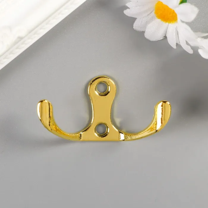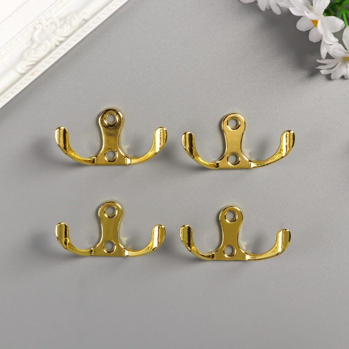 Крючок металл двойной (набор 4 шт) золото 4,5х3 см