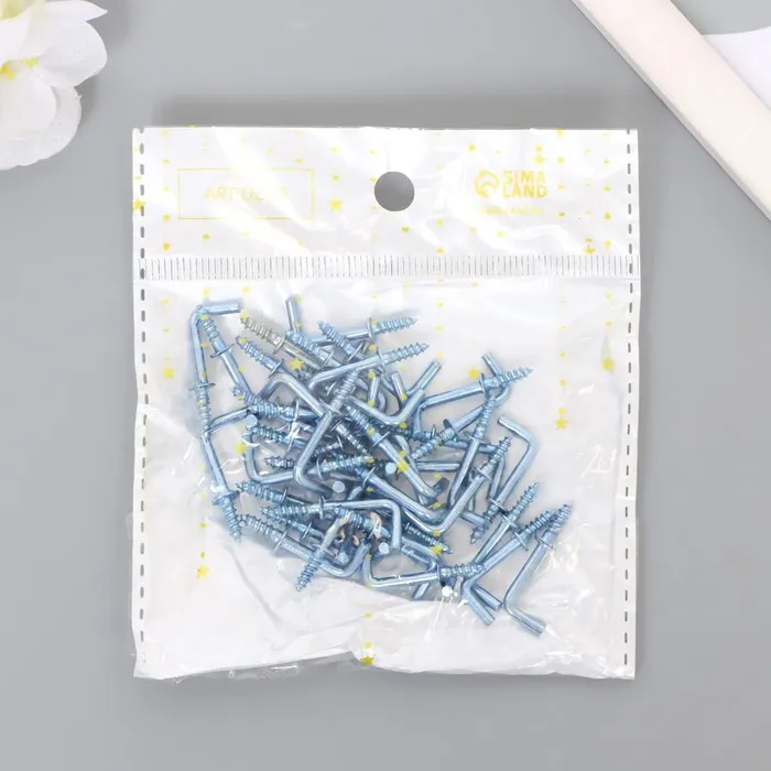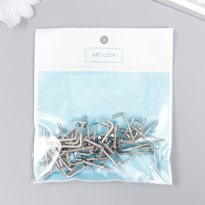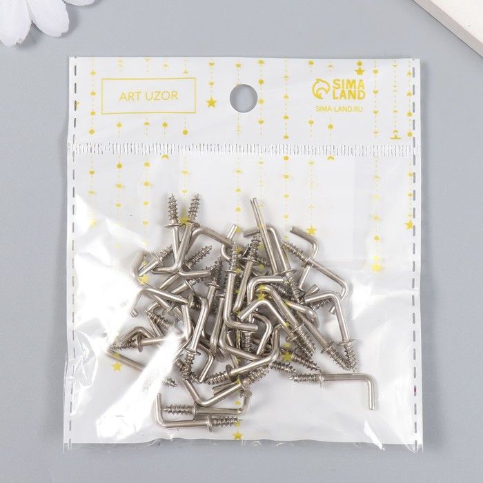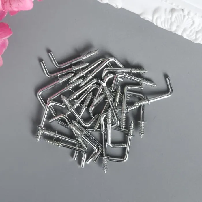 Крючок металл (набор 40 шт) серебро 2,5х0,5 см, МИКС — Характеристики