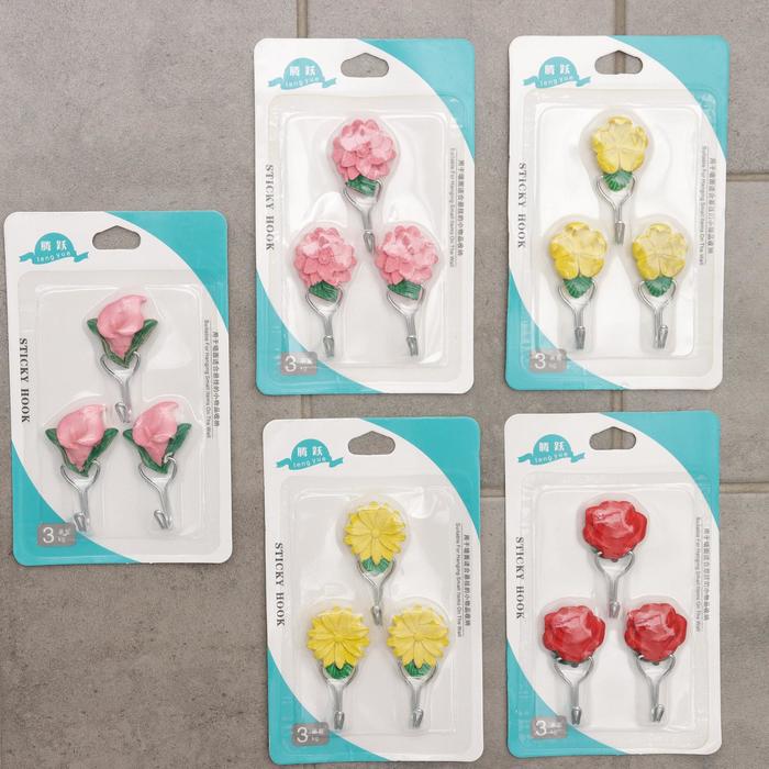 Крючок на липучке «Цветочек», 3 шт, цвет МИКС — Характеристики