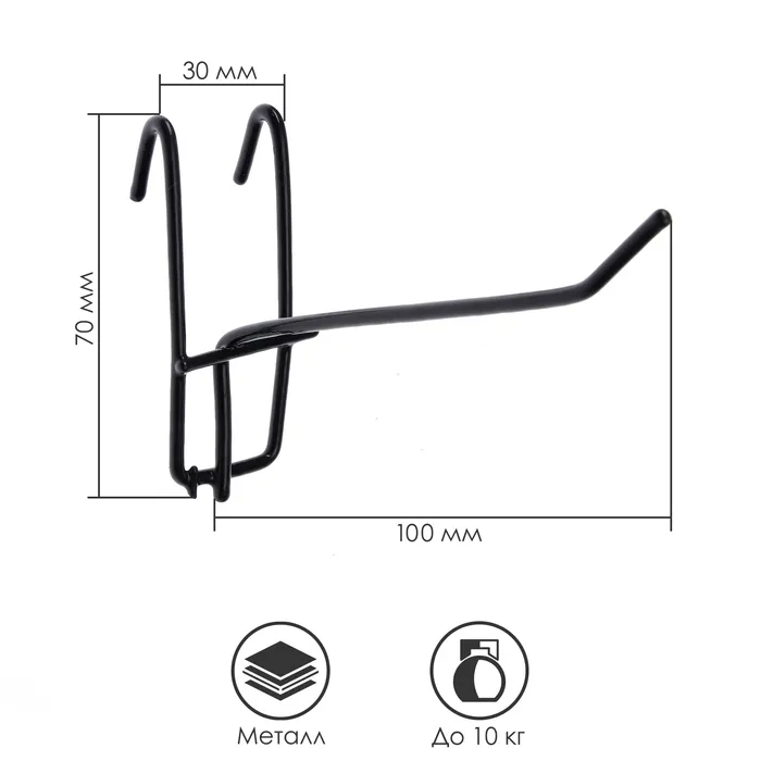 Крючок на сетку одинарный, d=3 мм, L=10 см, цвет чёрный — Характеристики