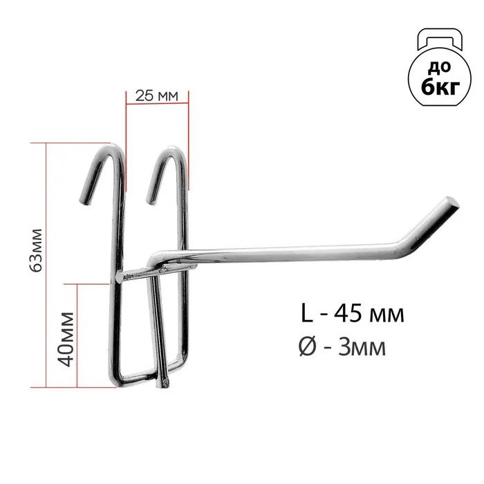 Крючок на сетку одинарный, d=3 мм, L=4,5 см, цвет хром — Характеристики