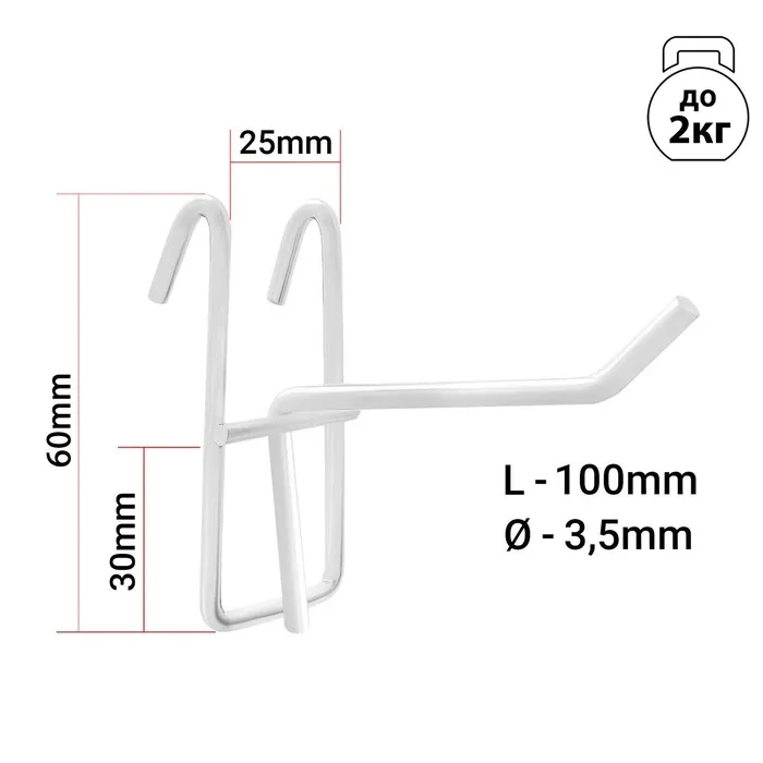 Крючок на сетку одинарный, d=3.5 мм, L=10 см, белый — Характеристики
