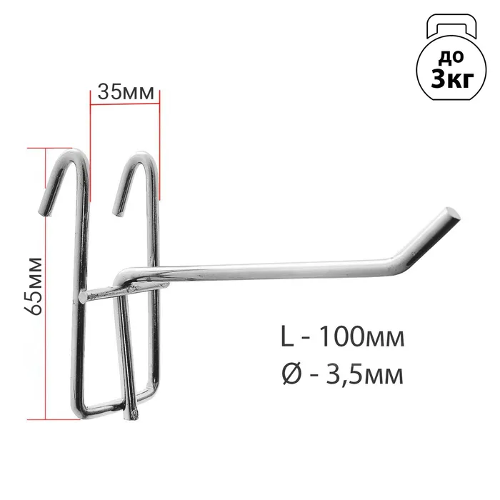 Крючок на сетку одинарный, d=3,5 мм, L=10 см, цвет хром — Характеристики
