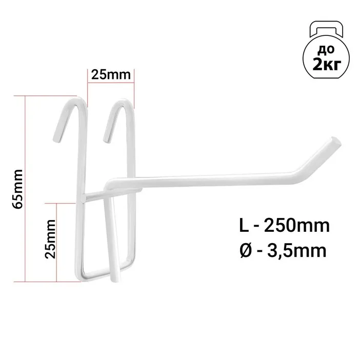 Крючок на сетку одинарный, d=3,5 мм, L=25 см, цвет белый — Характеристики