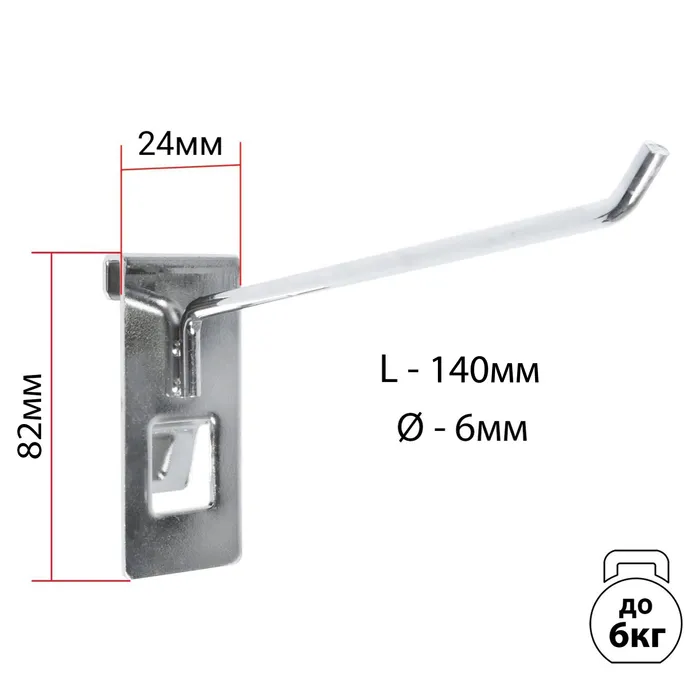 Крючок на сетку одинарный, d=6 мм, L=14 см, цвет хром — Характеристики