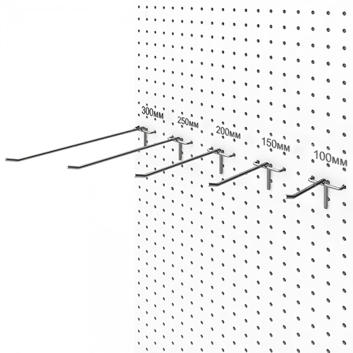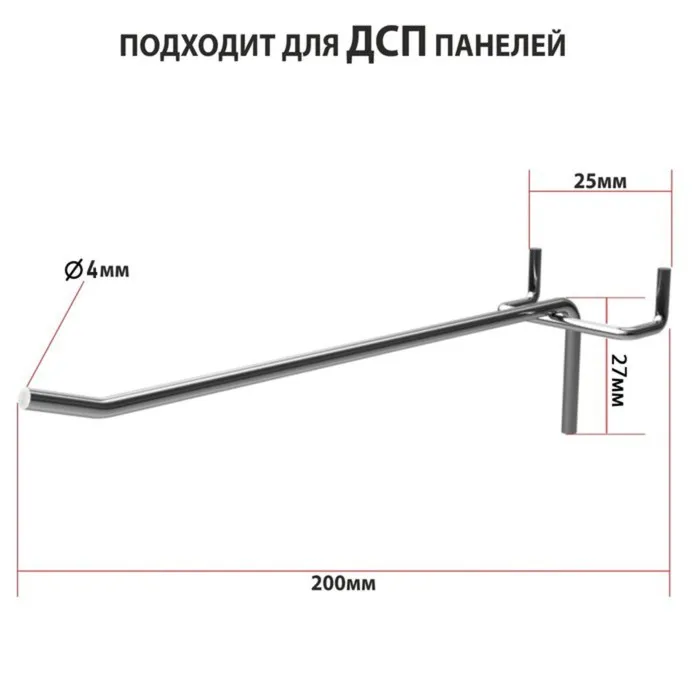 Крючок одинарный для ДСП перфорации, d=4 мм, L=20 см, шаг 25 мм, цинк — Характеристики
