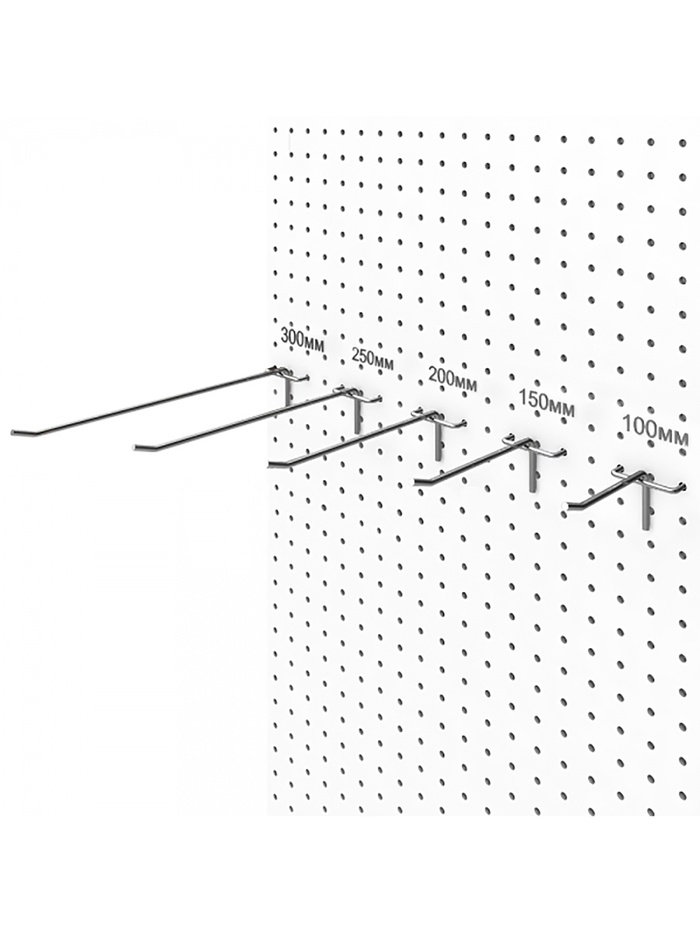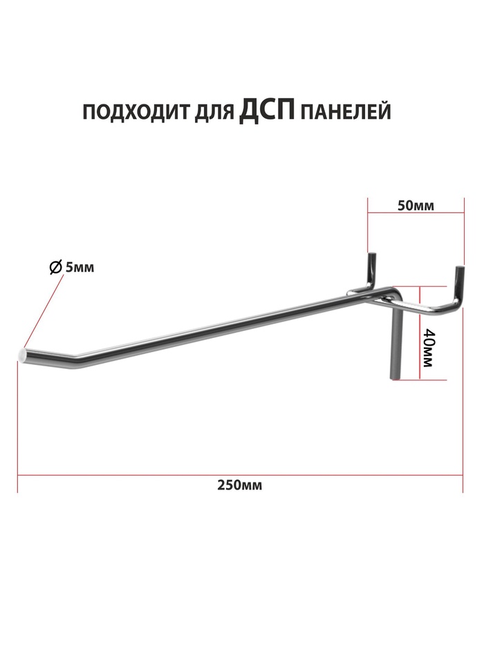Крючок одинарный для ДСП перфорации, d=5 мм, L=25 см, шаг 50 мм, цинк — Характеристики