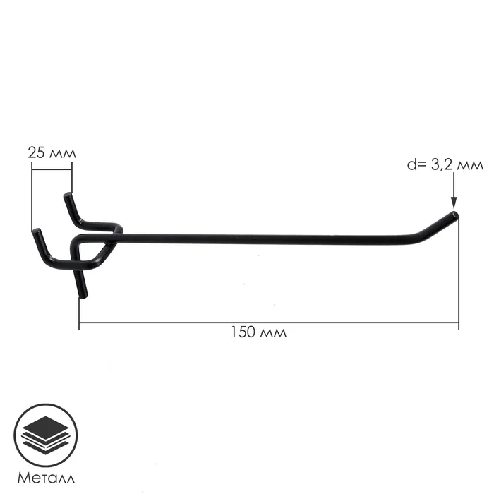 Крючок одинарный для металлической перфорированной панели — это надежное и удобное решение для организации хранения и демонстрации товаров. Изготовленный с диаметром 3,2 мм и длиной 15 см, он обеспечивает прочное крепление, а шаг 25 мм позволяет легко адаптировать расположение крючков на панели. Черный цвет добавляет стильный акцент, который гармонично вписывается в интерьер торгового пространства или мастерской. Этот крючок идеально подходит для перфорированных панелей, упрощая размещение инструментов, аксессуаров и товаров на витринах. Надежное хранение и оптимальная организация пространства с одинарным крючком для перфорированных панелей!
