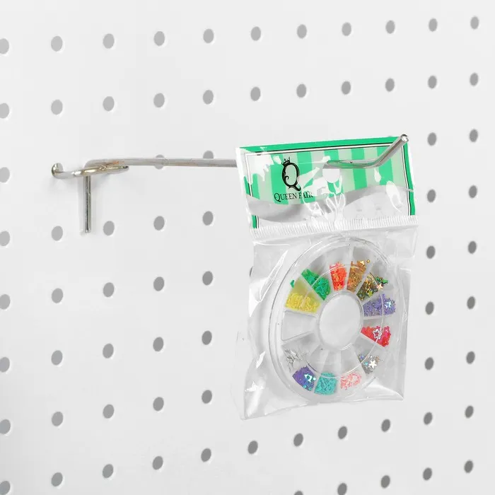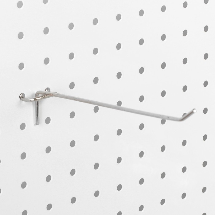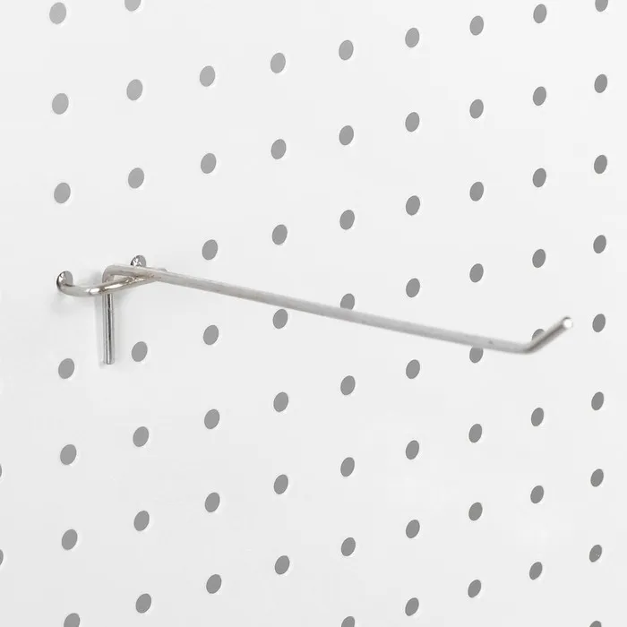 Одинарный крючок для металлической перфорированной панели диаметром 3,5 мм и длиной 10 см — это прочный и стильный аксессуар для хранения и демонстрации товаров. Хромированное покрытие придает крючку элегантный вид, который гармонично впишется в торговое пространство, мастерскую или домашний интерьер. Крючок обеспечивает надежное крепление на перфорированной панели, идеально подходит для удобного размещения инструментов, аксессуаров и товаров на витринах. Этот крючок помогает организовать пространство и поддерживать порядок, обеспечивая легкий доступ к размещенным предметам.