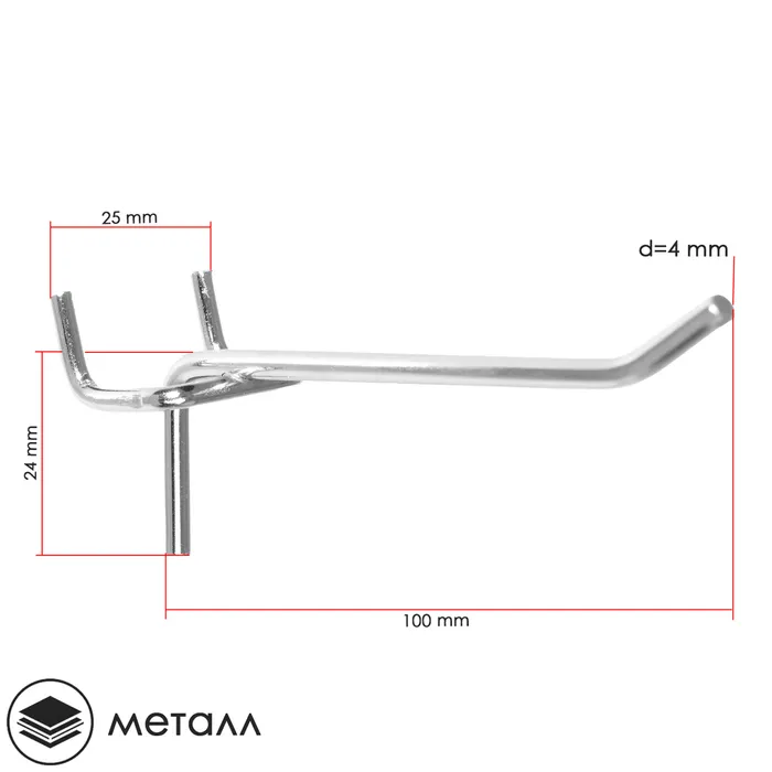 Одинарный крючок для металлической перфорированной панели диаметром 4 мм и длиной 10 см — это прочный и стильный аксессуар для хранения и демонстрации товаров. Хромированное покрытие придает крючку элегантный вид, который гармонично впишется в торговое пространство, мастерскую или домашний интерьер. Крючок обеспечивает надежное крепление на перфорированной панели, идеально подходит для удобного размещения инструментов, аксессуаров и товаров на витринах. Этот крючок помогает организовать пространство и поддерживать порядок, обеспечивая легкий доступ к размещенным предметам.