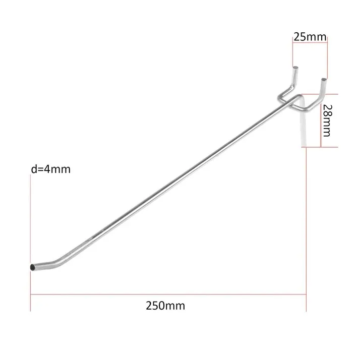 Одинарный крючок для металлической перфорированной панели диаметром 4 мм и длиной 25 см — это прочный и стильный аксессуар для хранения и демонстрации товаров. Хромированное покрытие придает крючку элегантный вид, который гармонично впишется в торговое пространство, мастерскую или домашний интерьер. Крючок обеспечивает надежное крепление на перфорированной панели, идеально подходит для удобного размещения инструментов, аксессуаров и товаров на витринах. Этот крючок помогает организовать пространство и поддерживать порядок, обеспечивая легкий доступ к размещенным предметам.