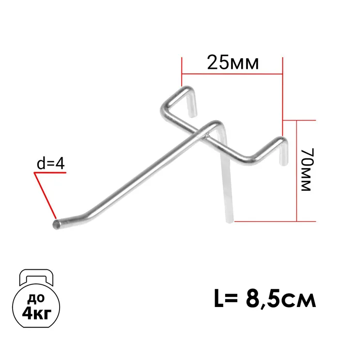 Крючок одинарный на сетку, d=4 мм, L=8.5 см, шаг 25, цвет хром — Характеристики