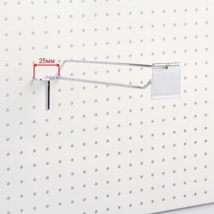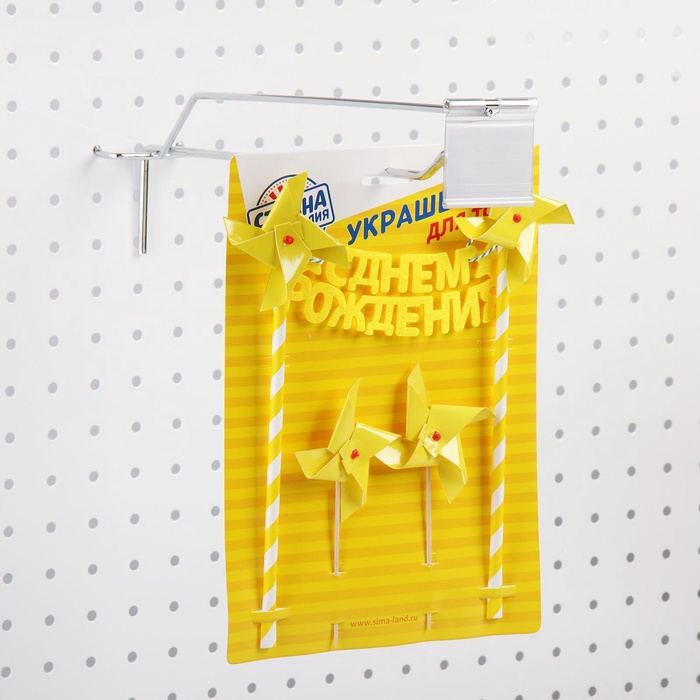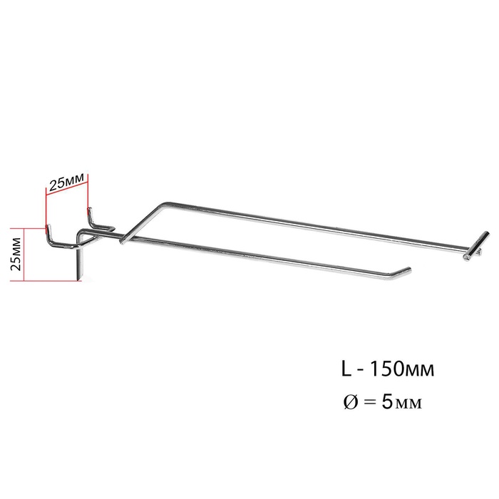 Комплект из пяти крючков изготовлен из качественного металла с хромированным покрытием, что придает им современный и опрятный вид. Каждый крючок снабжен держателем ценника, позволяющим удобно расположить маркировку товаров, делая торговый зал удобнее и понятнее для покупателя.