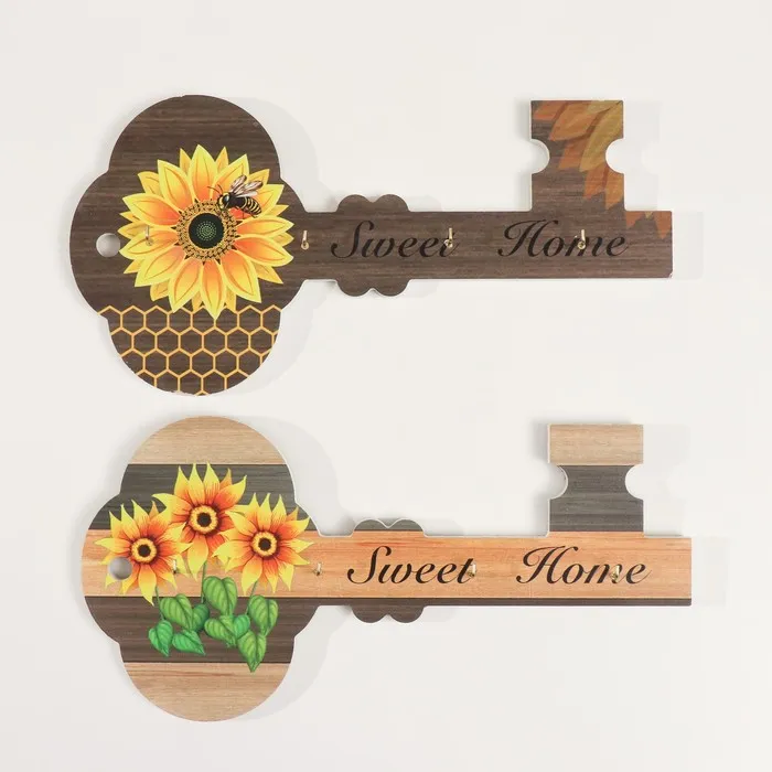 Настенные крючки декоративные «Ключик с подсолнухом», дерево, 2.5×29.5×15 см, МИКС